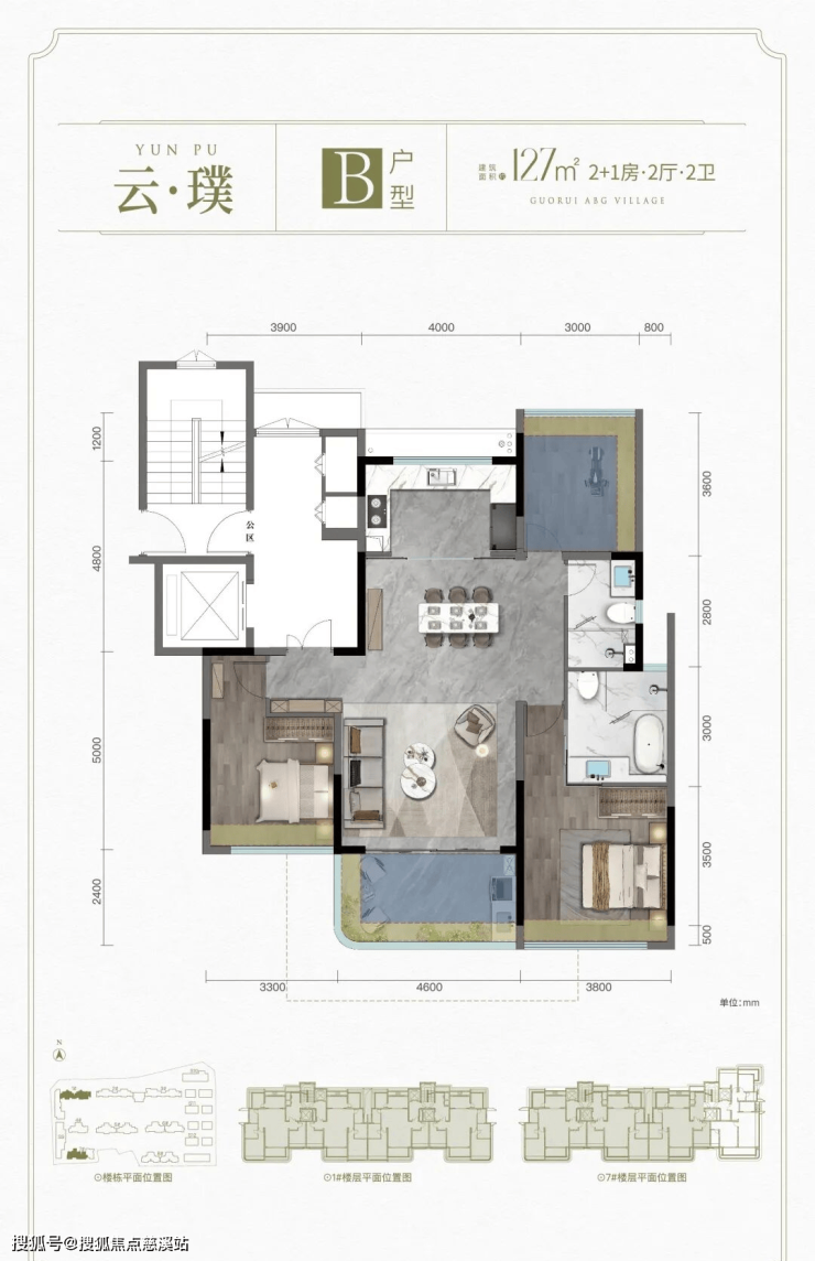 B户型: 建面约127㎡ 2+1房2厅2卫