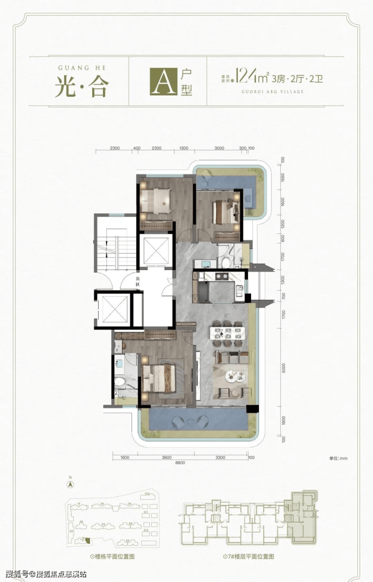 A户型: 建面约124㎡ 3房2厅2卫