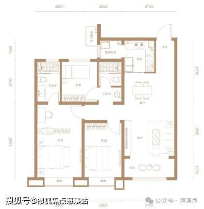 户型动静分区,互不干扰,方正客厅向南延伸出阳台,向北衔接LDKB餐厨区域,优化了生活动线。