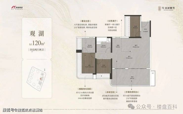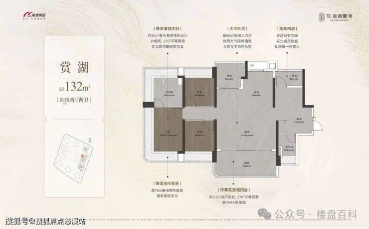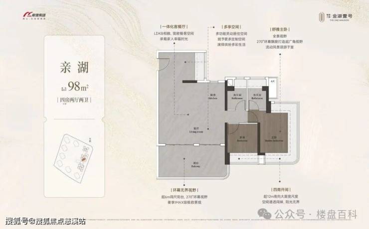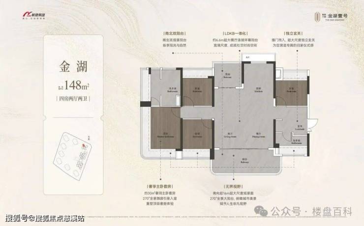 约98-148㎡全南向湖居四房,对标当代华宅范本,创变居住空间的新想象;全南向新规的突破、环拥天地的居住空间、精工雕琢细节之美,打造湖居理想之家,为万博CBD钜献湖居壹号作品。