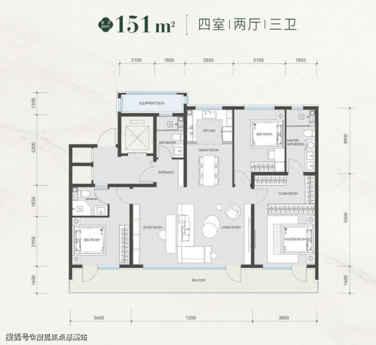 奢阔LDKB一体化:约7.2m 宽厅、餐厨与约14.6m 开敞阳台衔接,满足家庭互动需求;