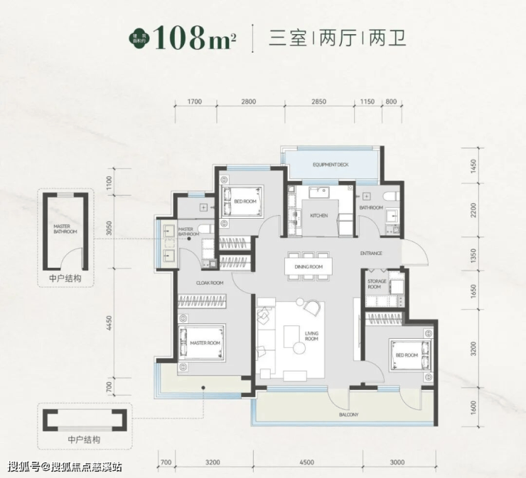 108㎡「雅庭」以 “紧凑不局促、功能全到位” 为原则,在三房两卫格局中,平衡收纳、互动与私密,适配从二人世界到三口之家的首置进阶需求。