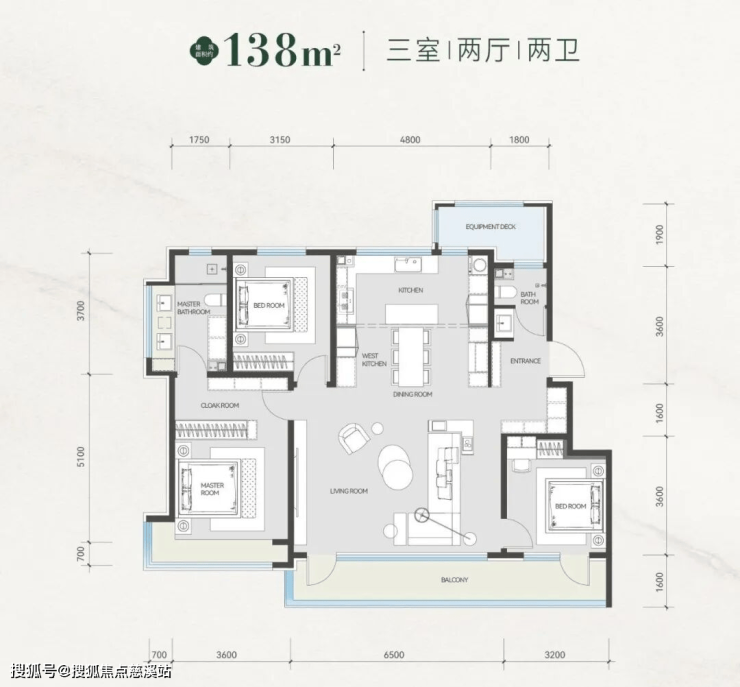 LDKB 一体化:餐客厨与约7.5m 开敞阳台无缝联动,动线流畅,可拓亲子、休闲等场景;