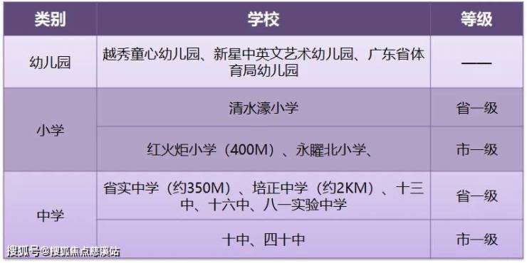 周边名校环绕,清水濠小学(省一级),广州老牌名校红火炬小学(创办于20 世纪40年代历史底蕴丰厚),中学覆盖省实、16中、培正、八一实验等多家省级名校。