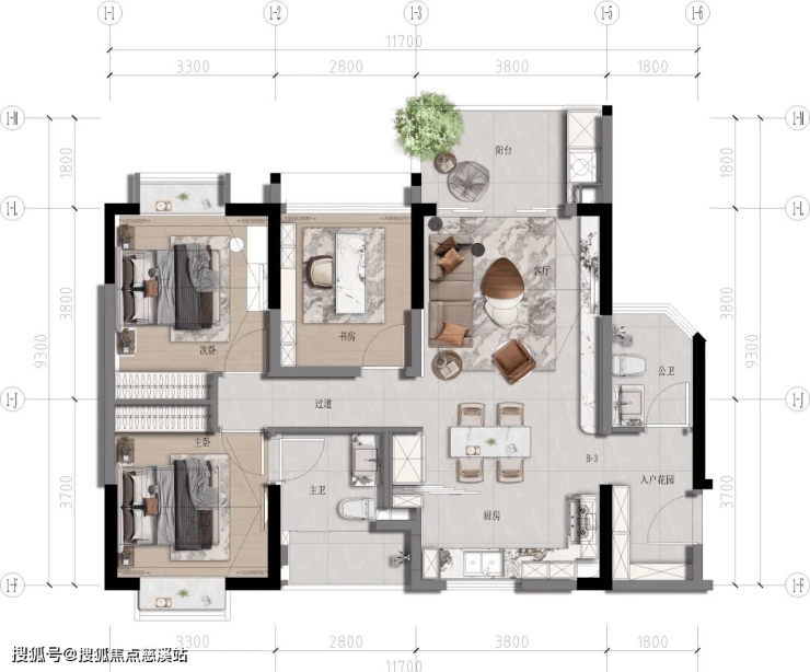 ◎无界生活:创新LDKS-B空间模式,客餐厨、书房、阳台联动打通