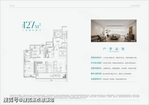 127平方米三房两厅两卫:动线合理规划,动静分区明确,适合家庭聚会或朋友来访。