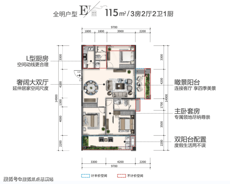 【产品价值】:户型南北通透,超高赠送率;大阳台270°三面观景;单层层高3.15米;酒店式管家服务,奢享品质度假生活。