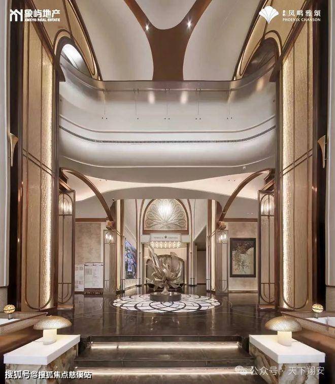 约67米长的“安缦风”雅奢门庭让人眼前一亮。流动金属线条勾勒“凤凰展翅”之姿,主入口黑金沙石铺就龙鳞水波纹,暗喻“望子成龙,望女成凤”,这大概就是“名门风范”的具象化表达。