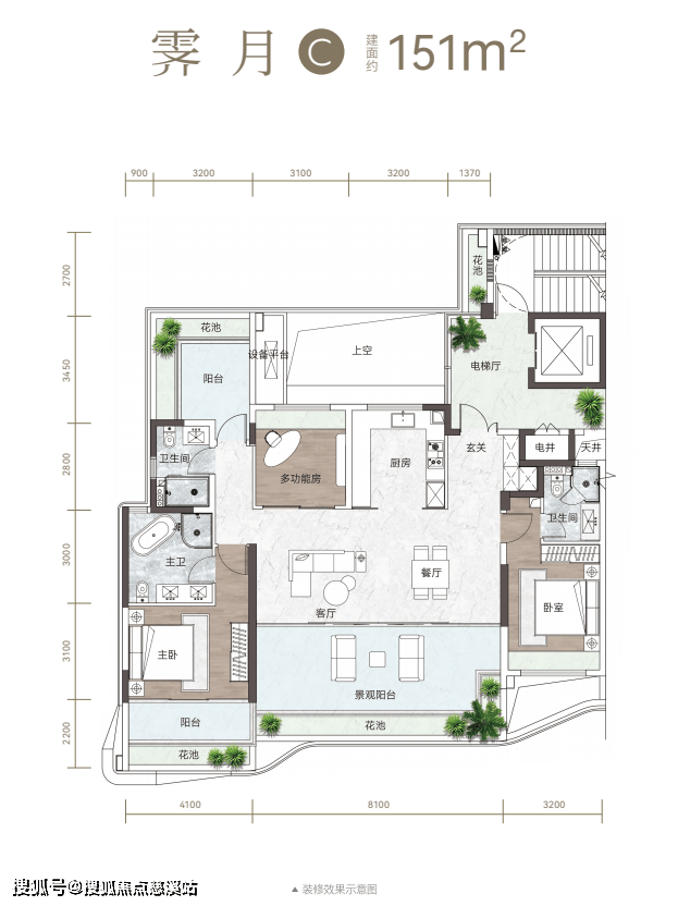 除此之外,项目更规划四代宅进阶户型,将空中花园纳入室内动线,部分露台空间可实现约12米的挑高,营造独特无阻的“云端绿洲”。庭院不再是地面的专利,而是成为家的延伸,让“有庭有院”的栖居理想得以实现。