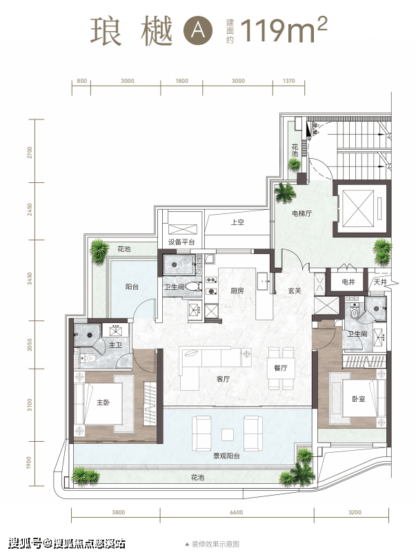 漫行园境,是一场充满探寻的旅程。以约40%高绿地率构建五重立体园林,让水景、繁花、树阵层叠成境。甄选凤凰木、霸王棕、狐尾椰等百种植物,勾勒热带雨林原生意境,让每一处节点皆可停留、可互动,每一次归家都是一场穿越雨林的心灵度假。