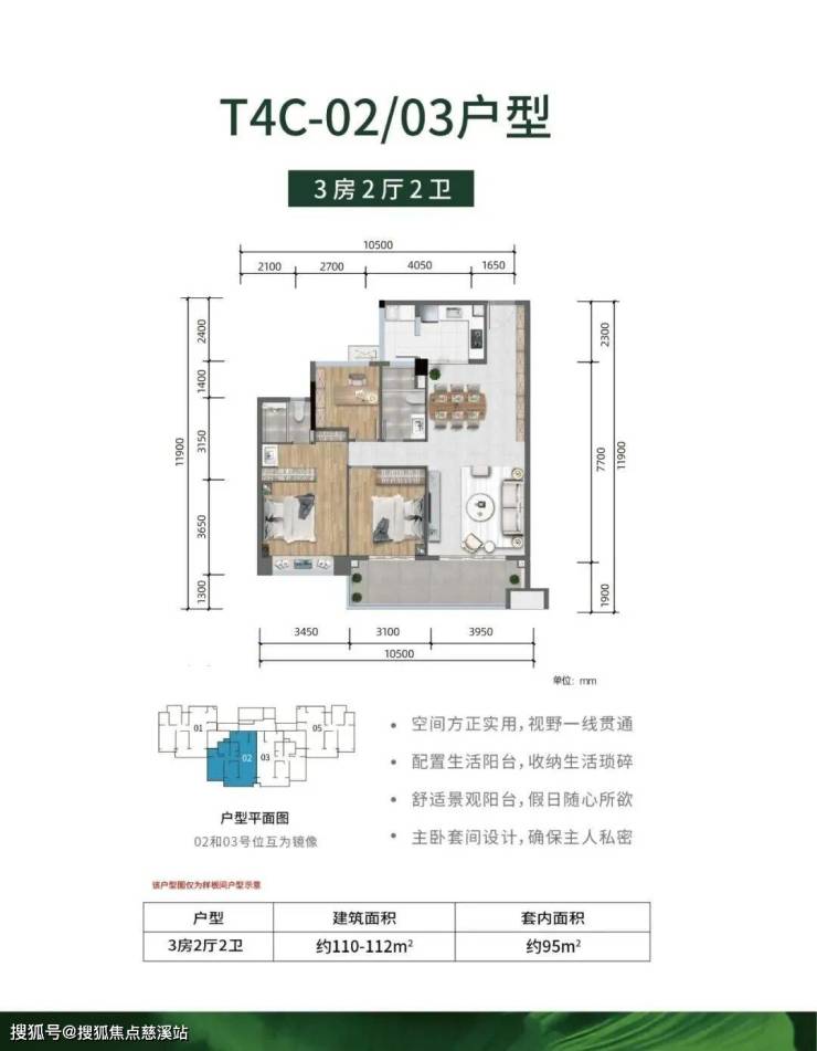 -全明户型,方正实用、公摊低,大主卧、超大景观阳台设计