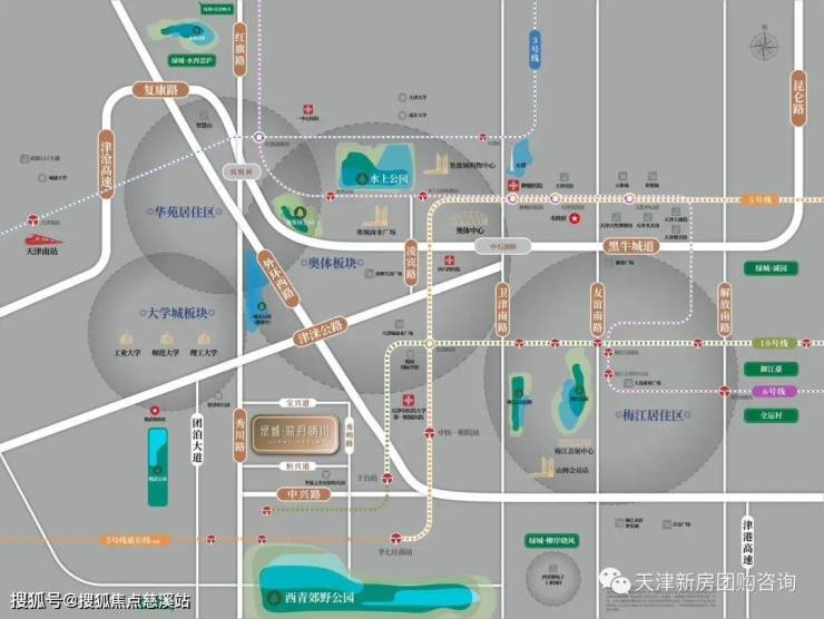 此外项目约20分钟自驾车程还可到达华苑、天塔、文化中心商圈;