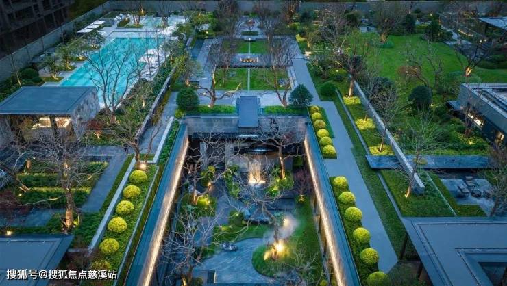 中央聚场打造大型景观交流空间,目之所及皆风景,四水归堂,藏风聚气,营造东方意境。乌桕、香樟、榉树、娜塔莉树阵列席其间,致敬归家礼序。