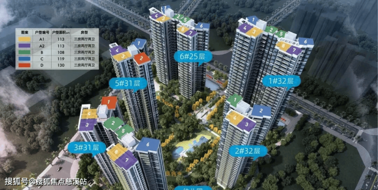🎢总层高:楼层总高:1-2#32层,3-5#31层,6#25层;2🪜4户。