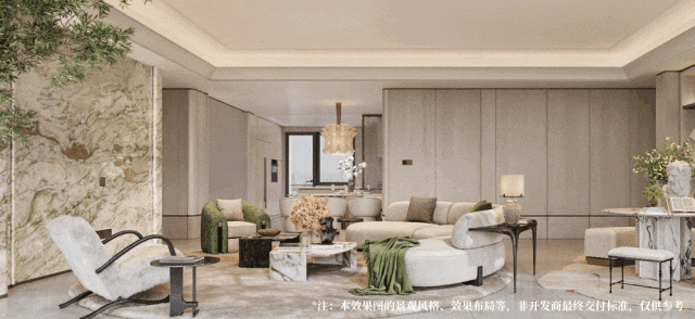 其客厅的打造,融入了全景舱的设计,允许业主消弭客厅两侧墙体,形成完美连贯的使用空间。