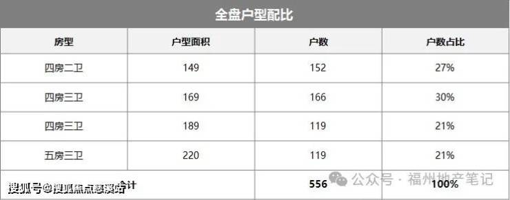 项目主推149-220㎡的四至五房产品,其中149、169㎡层高3米,189、220㎡层高3.05米。沿晋安河楼栋及中心楼栋主力打造189-220㎡,靠近庙宇与少管所不利因素较明显的楼栋则主要布局149㎡。