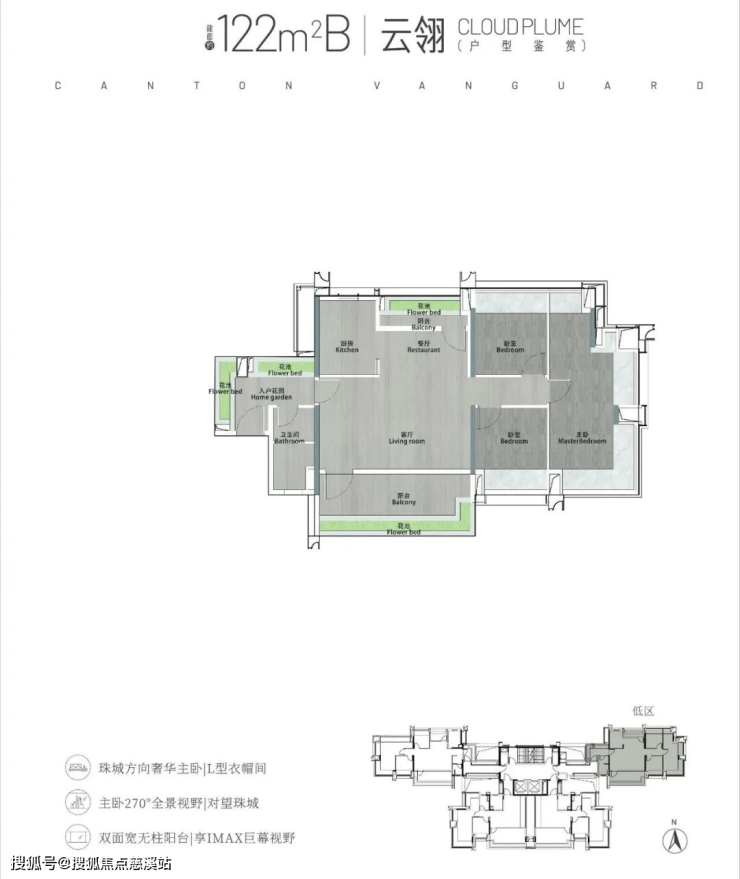 139㎡天际大平层4房3卫,仅15套,配置占据东边梯腿 23层以上270°环幕视野尽揽珠江新城繁华。