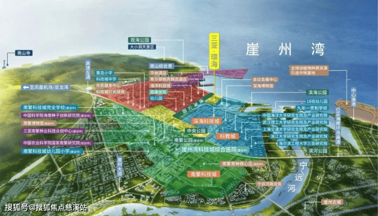 有别于其他湾区,崖州湾不再以传统旅游度假为主,而是要实现三亚产业转型升级,被海南政府定义为海南自由贸易建设的先行引领区。总规划面积26.1平方公里,由“深海科技城、南繁科技城、大学城、全球动植物种质资源中转基地和南山港”五部分构成,作为我省12个先导性项目之一,将以“国际标准、世界眼光、高点定位、三亚特色”为构架,打造开放创新、陆海统筹、产业繁荣、文化自信、绿色节能的先导科技新城。