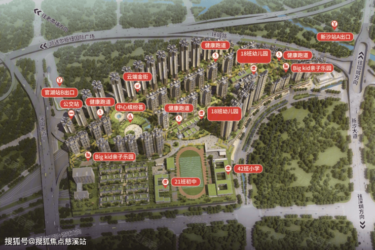 品秀星图很大,横跨了13号线官湖站和新沙站,小区东西两个主入口,到官湖和新沙站的距离分别为450米和650米,步行时间在5到10分钟间。