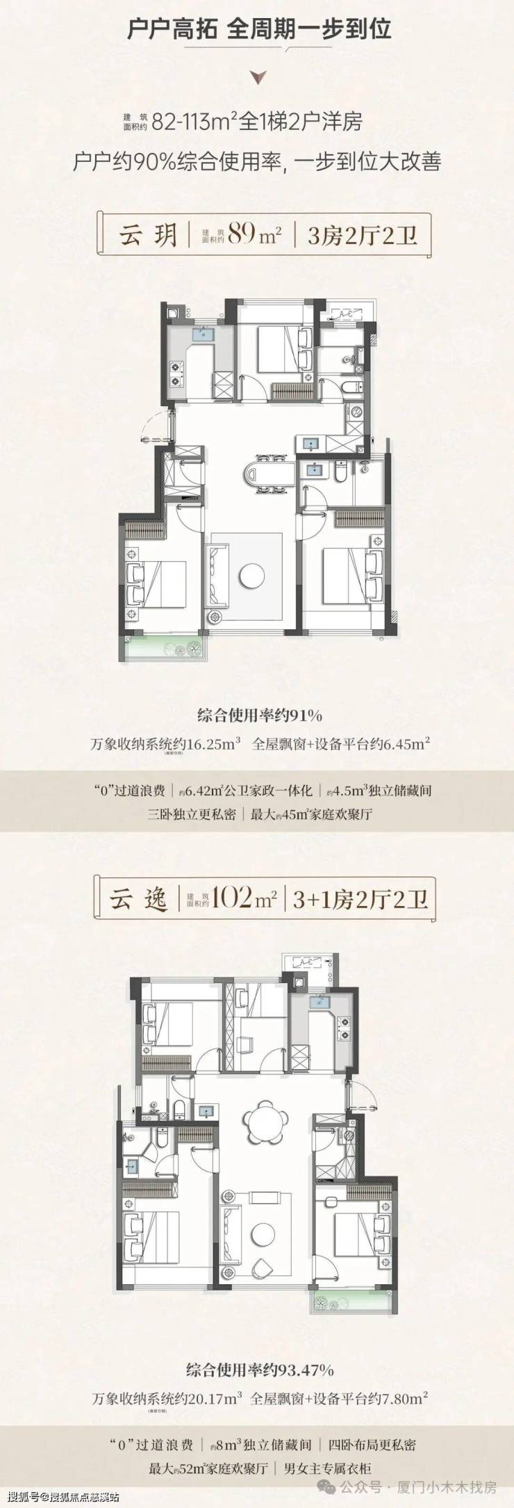 建面约82-113m²全1梯2户 首创万象收纳系统