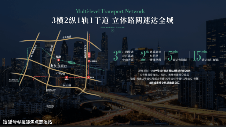 北环高速+广园快速+中山大道/环城高速+科韵路3横2纵主干道