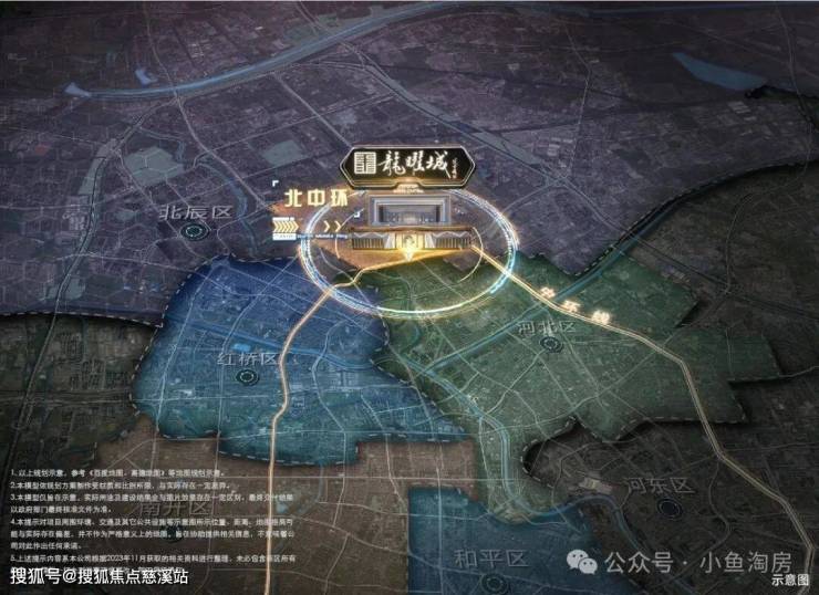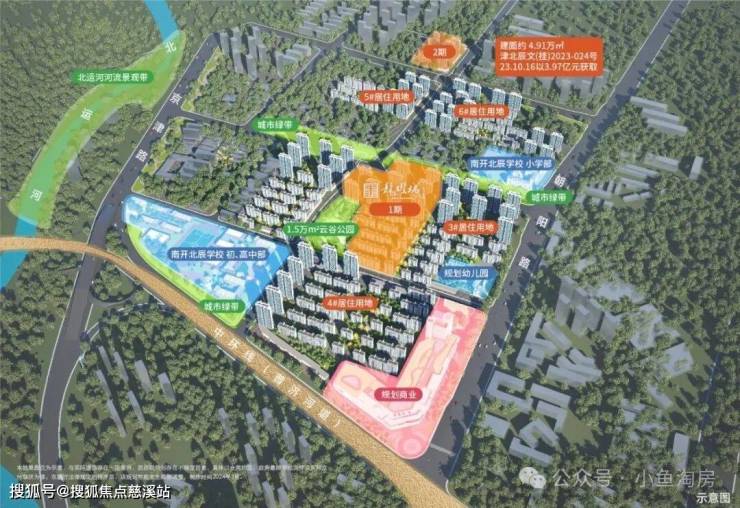 南开学校落址 九年一贯制:南开中学校北辰学校落址项目区域,九年一贯制中小学+高中学部配置,形成12年“小、初、高”全龄目送式优教。
