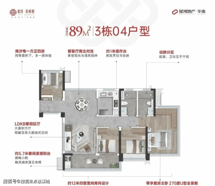 超高得房率:最高达128%,89㎡户型可实现四房两厅两卫,实际使用面积相当于市面113㎡户型,空间利用率极高。