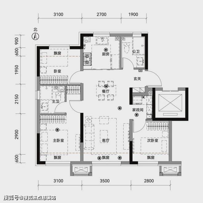 一个建筑面积仅有89㎡左右的户型,还能做出什么花样?打破此面积段传统两房格局,打造目前市面最畅销的三房飞机户型,最重要的是,如此紧凑的户型,还可以做出双卫+独立家政间的配置,让整个户型除了功能性max以外,更是增加了改善属性,即使只有89㎡的建筑面积,但可以体验到100㎡的舒适感。