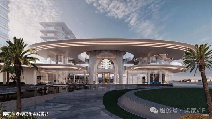 建筑以“超流体立面”呼应海浪肌理,通过悬挑阳台、底层架空消解建筑与水岸的边界,搭配 270° 观景阳台、云端泳池、环形瞰海露台等设计,让河景、海景与生活空间深度交融,成就“外揽海之豪迈,内藏河之幽静”的谧境岛居。