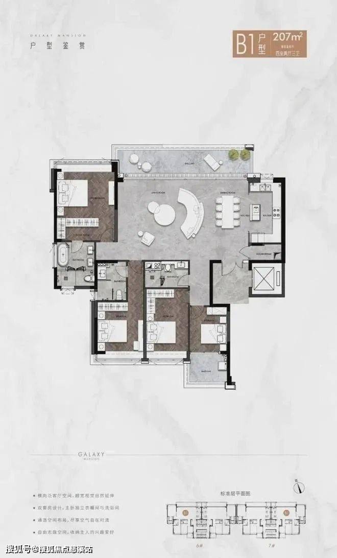 星河江缦全盘仅有342套单位,有且仅有四房起大平层,全部是双主套设计,追求的是私密尊贵。