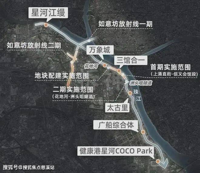 目前,白鹅潭大道星河江缦段已建成通车,花地河-洲头咀隧道段、上涌直街-信义会馆段均已经动工。