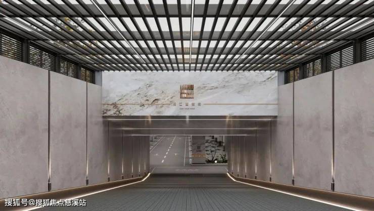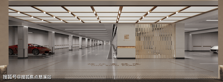 地库入口以灯带嵌入的格栅光轨吊顶,两侧石材格栅以及灯光的映衬,体现出空间的精致感,让归家如同穿越时光一般梦幻;内部浅色系流行搭配、梦幻的天幕星空顶,让地下空间明亮通透;地面铺贴防滑耐磨减震,搭配金属格栅吊顶,流动的光影艺术,精奢感充斥着每一寸空间,让归家也充满着艺术感与仪式感。