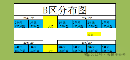 【B区中学零距离】:小区共4栋154户,小区2、5号楼为135平,1、3号楼为170平和150平