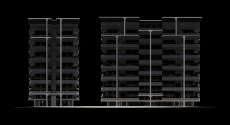 现今住宅立面的精神需求:类比生命,具有高度适应性及强大复原能力,在温柔表层下蕴含坚韧与安全。设计提炼“生命之树”元素,通过纵向线条构成其向上的生长姿态,竖向线条因立体交错的“树枝”被赋予了强大的生命力。