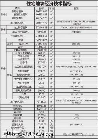 项目总建筑面积:468342.76平方米,地上建筑面积:391607.89平方米,地下建筑面积:76734.87平方米,基底面积:33850.16平方米,建筑层数:主体33层,裙房(退台)3层,地下室2层,建筑高度:主体98.05米,裙房(退台)15.7米,地下室8.9米,标准层层高:2.95米,首层地面高程:824.2,室内外高差:0.1米。另外幼儿园总占地面积6500㎡。