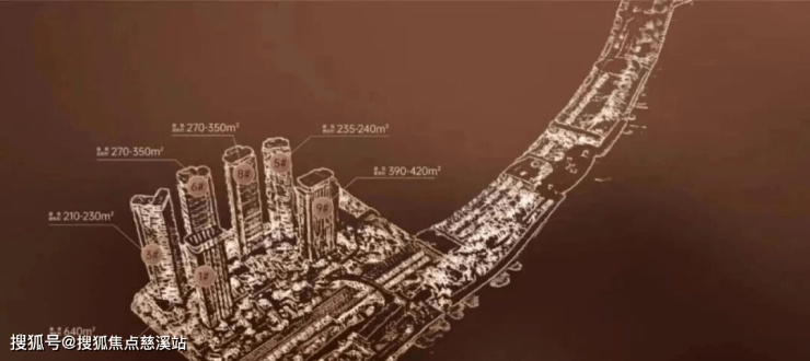 项目产品涵盖205-630平户型,呈半围合式布局,户户朝南、户户一线望江。