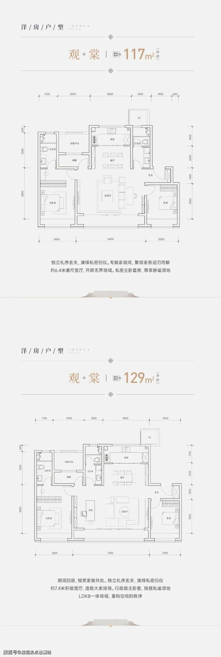 117平三室两卫6.4米宽厅落地窗、129平三室两卫厅宽7.4米,均赠送8平米,超大得房率。
