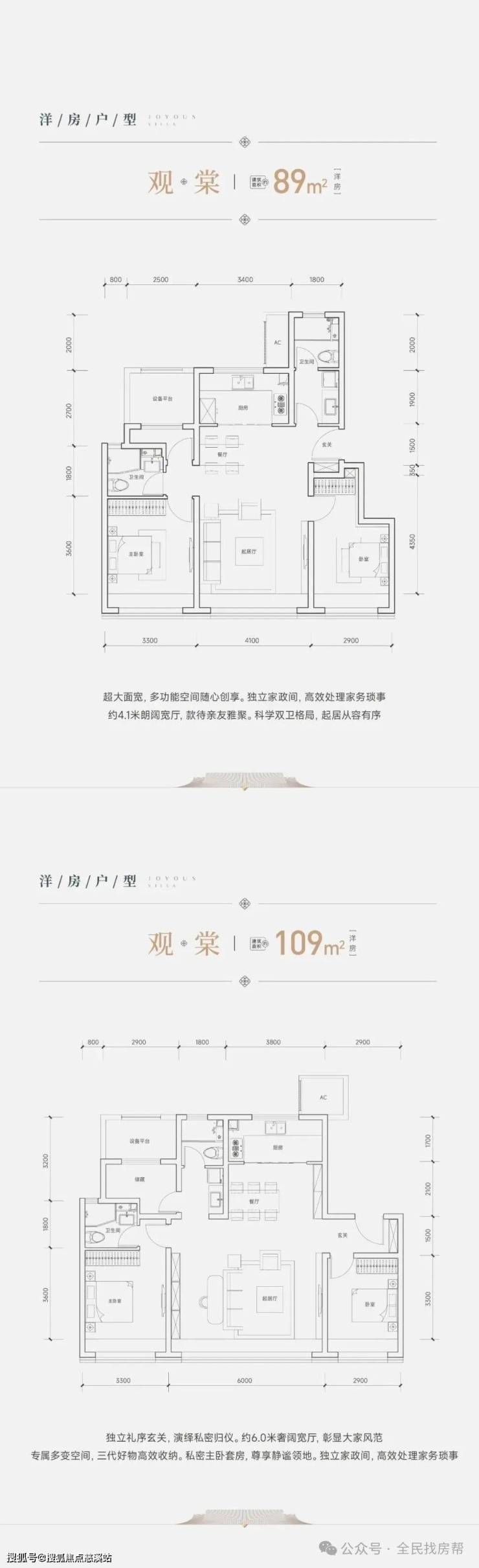 洋房:一梯两户,一楼带小院和地下室,架空层高5.8米,89平、109平均赠送面积10平。