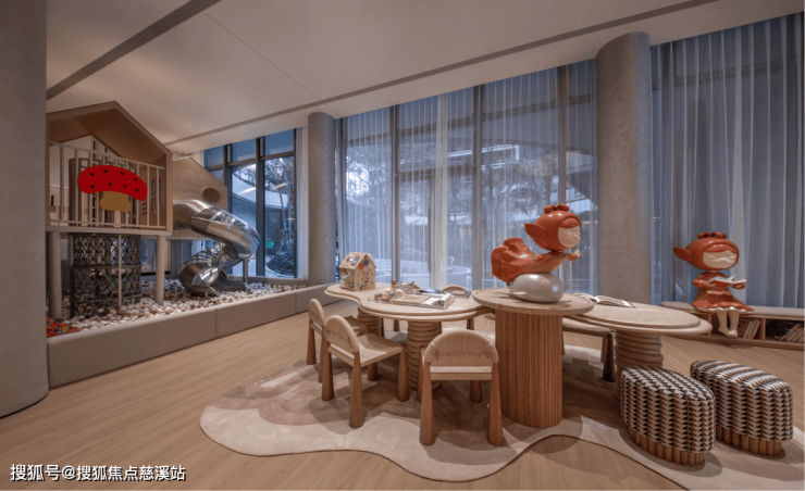 约88米无边界浮光泳池与隐奢雨林,海岛度假轴连接6个主题园,老人能在谷雨园休憩,孩子可在幻梦园玩耍,全龄段业主各得其所。