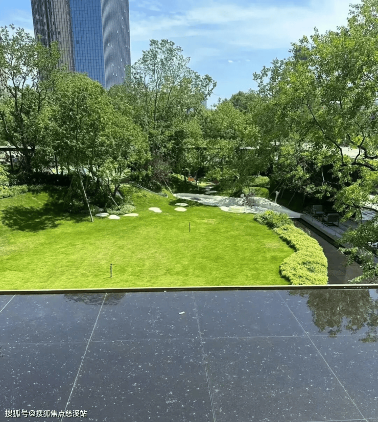小区园路、设施井、水景池、景墙、围墙均采用全石材拼装,局部采用一般在豪宅盘才能看见的普拉达绿奢石,彰显“越级产品力”。