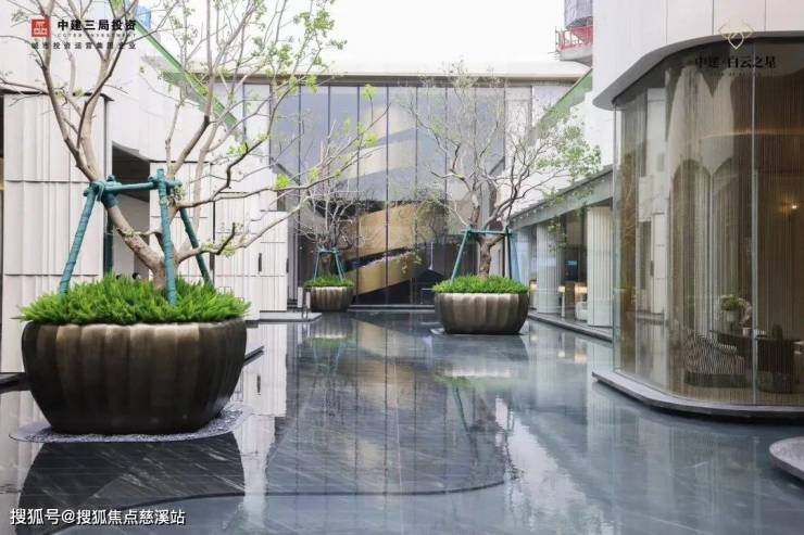主入口是约55米宽、约8.7米挑高的酒店式大门,再以各种奢石铺陈;