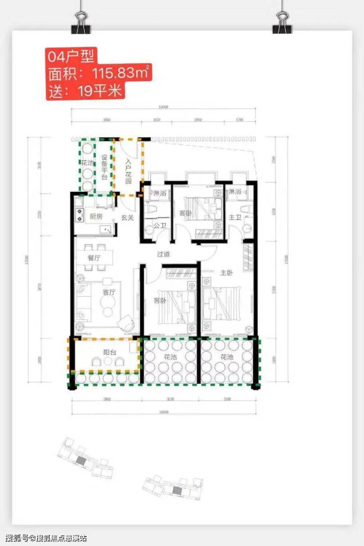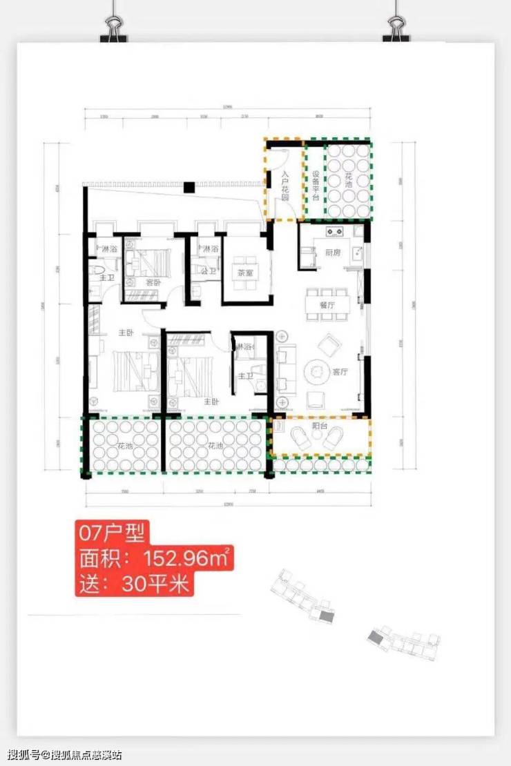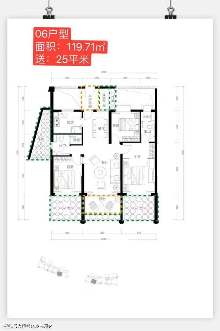 7号房,3房2卫:约120平送19/25平(总价780万-939万)
