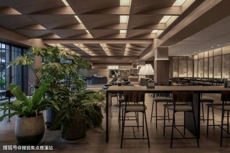这是继第一核心区(南会所板块)之后的第二个核心区域的出发点,总面积约2900㎡左右,衔接了山体的带状公路节点,内容包含了多元的餐饮形态:中式·甬府家宴、西式·藏红花西班牙餐厅、和式·鸟万炭火料理和影院、健身房。提供了各种不同餐饮形式,以及娱乐业态与山之间不同时段的对话。