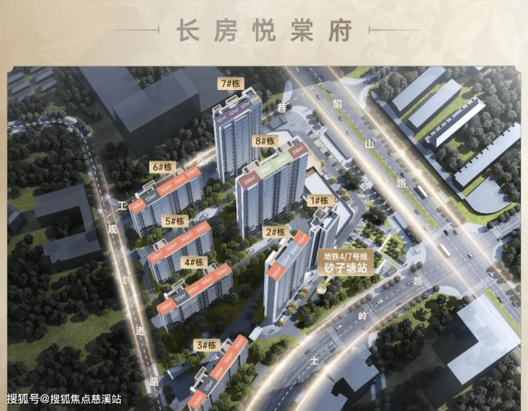 项目位于地铁4号线砂子塘站6号口,位居五一商圈、东塘商圈、德思勤商圈交汇处。