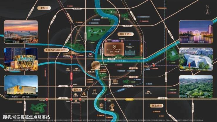 距离海河上游仅约1公里,兼具一线河景资源和便利的城市配套,满足“既安静又便捷”的居住需求。