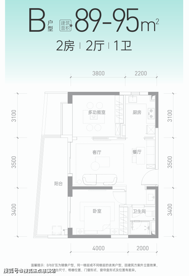 B/B'户(89-95㎡2居,餐阳连通);