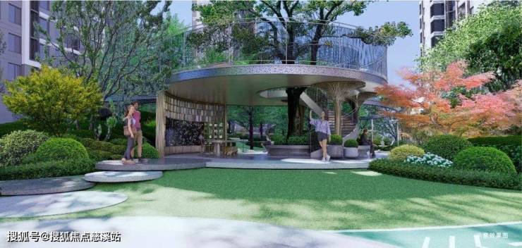 外部多样化架空平台将社区整体抬高约5.3米*,住宅楼栋和景观花园悬浮于半空,宛若天空之城。架空高差与外界形成一道天然屏障,安静私密,视野开阔。