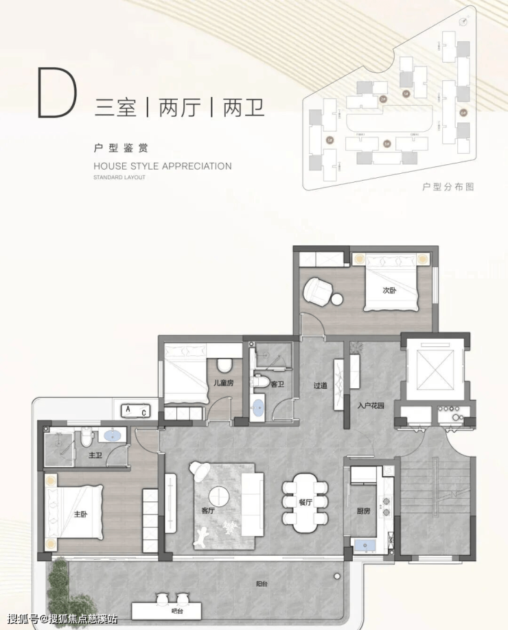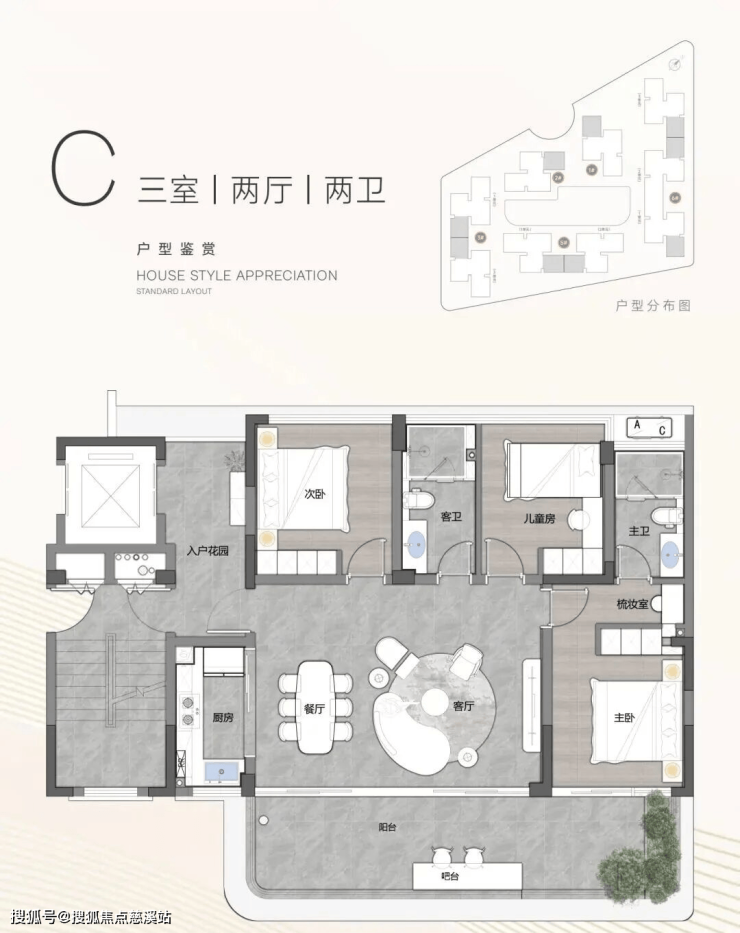 3、105平米三房两卫