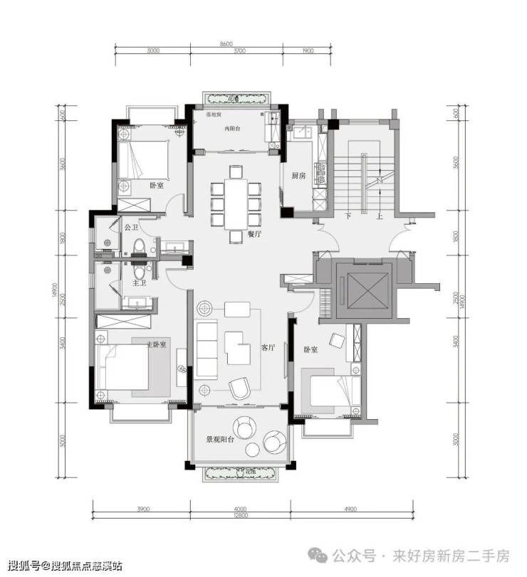 B户型:建筑面积约120平方米三房两厅两卫
