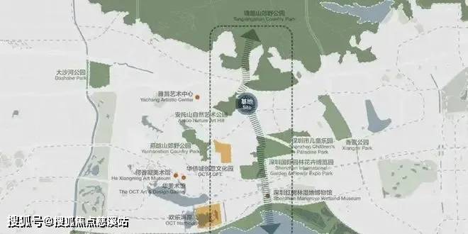 中心区域:深圳山海城中轴,左手香蜜湖、右手华侨城,六大总部基地环伺